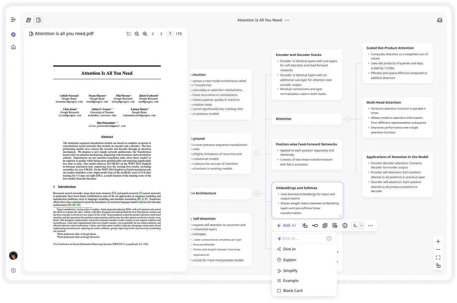 Take notes on any node, edit freely, organize visually. Your workspace adapts to your thinking style, not the other way around.